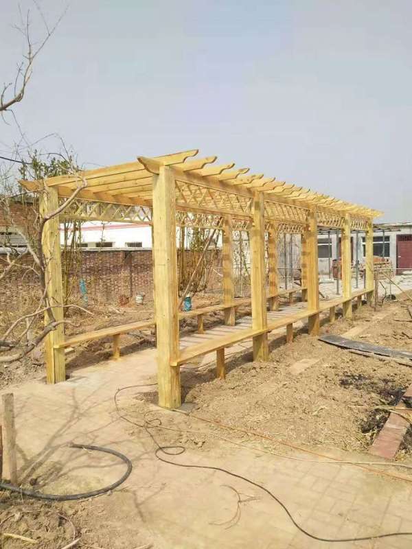 以防腐木材、竹材、石材、金屬、鋼筋混凝土為主要原料添加其它材料凝合而成。